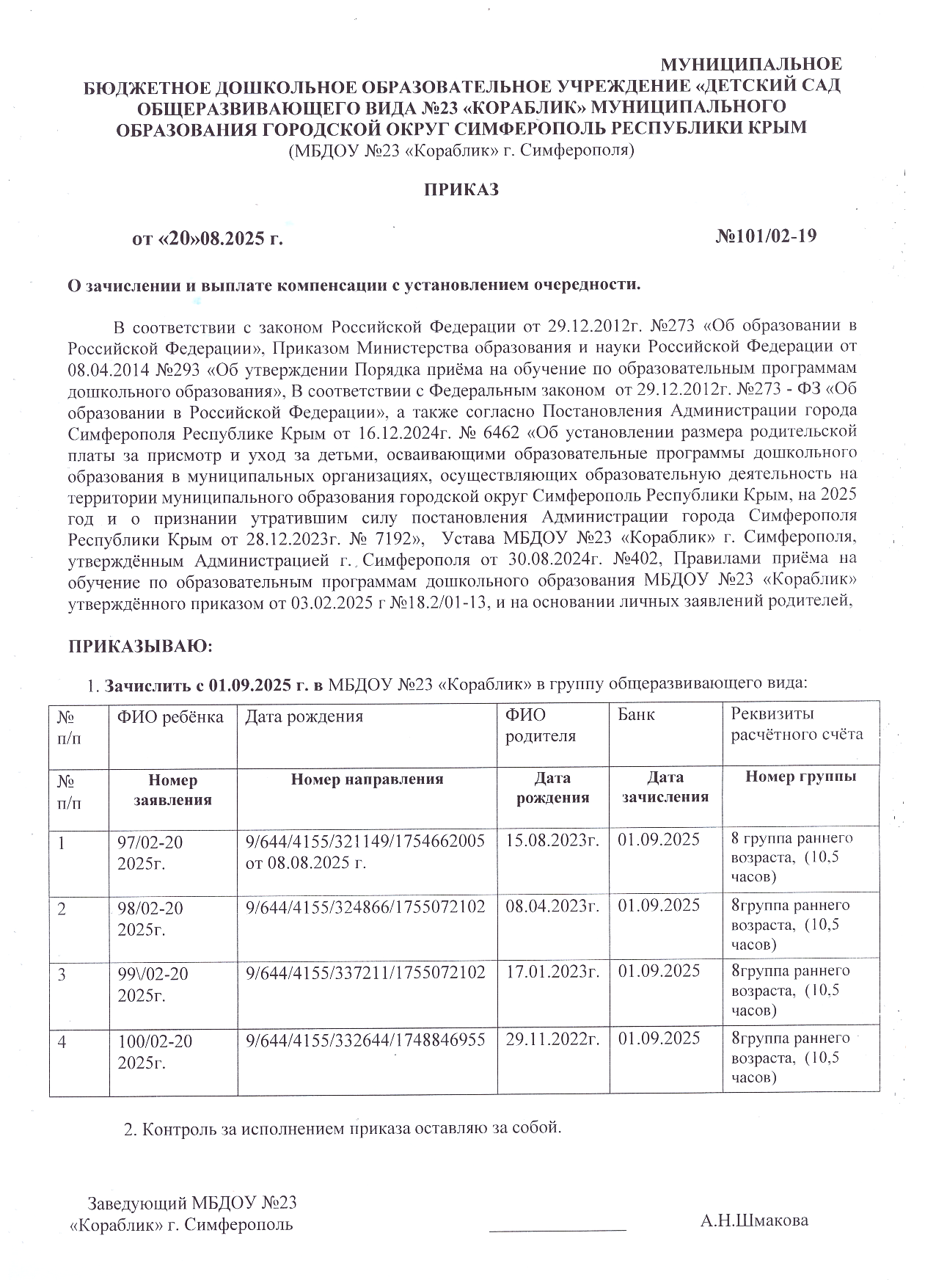 Муниципальное бюджетное дошкольное образовательное учреждение «Детский сад общеразвивающего вида №23 «Кораблик» муниципального образования городской округ Симферополь Республики Крым